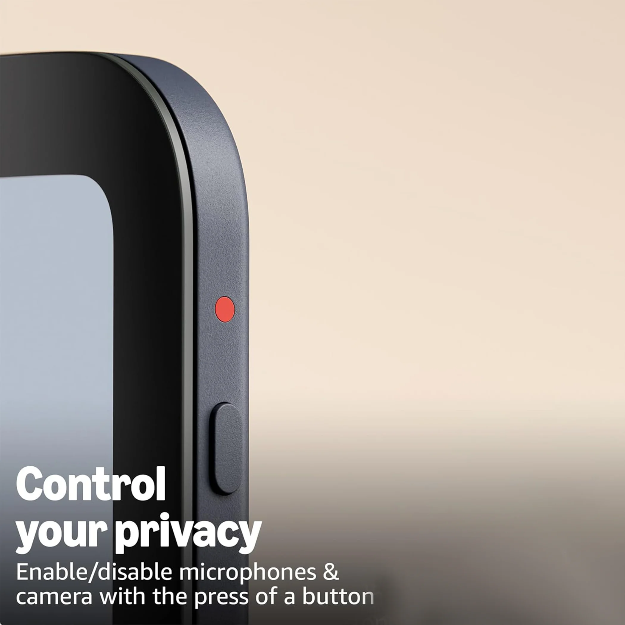 - Privacy: Physical button to enable/disable microphones and camera